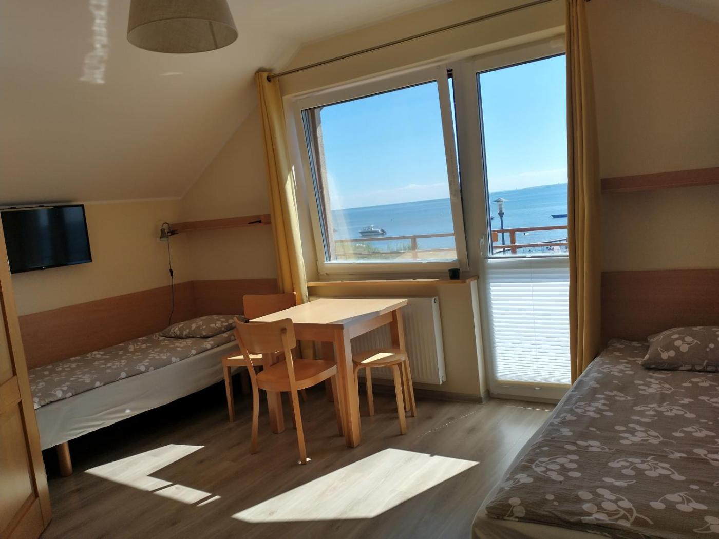 Pokój trzyosobowy. The triple room provides a wardrobe, an electric kettle, a balcony with sea views as well as a private bathroom featuring a shower. The unit offers 2 beds. Pokój Trzyosobowy - 3 osobowy.