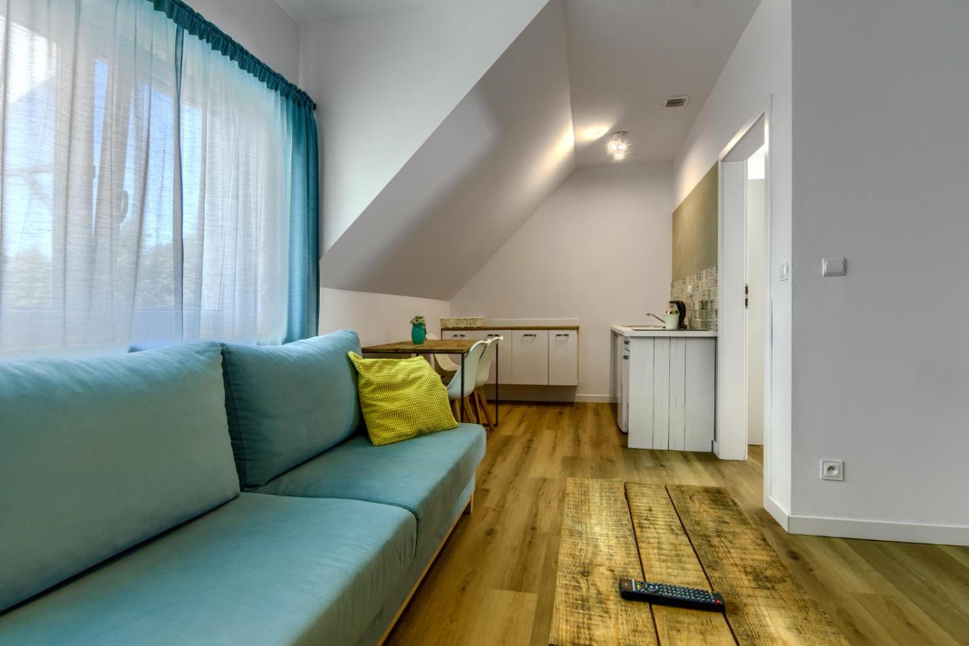 Apartament z widokiem na ogród. This apartment includes 1 living room, 1 separate bedroom and 1 bathroom with a walk-in shower and free toiletries. Guests will find a stovetop, a refrigerator, kitchenware and a tea and coffee maker in the well-fitted kitchen. The apartment also features a barbecue. The apartment offers a washing machine, a private entrance, soundproof walls as well as a terrace with garden views. The unit has 3 beds. Apartament - 5 osobowy. Powierzchnia pokoju ok.: 40 mkw. ;