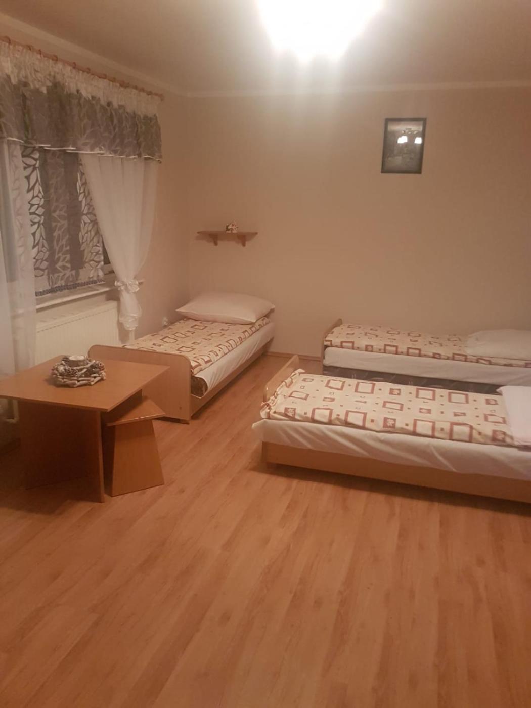 Pokój Czteroosobowy. The quadruple room includes a shared bathroom fitted with a shower. Guests will find a stovetop, a refrigerator, kitchenware and an oven in the kitchen. The quadruple room also comes with a barbecue. The quadruple room features a wardrobe, parquet floors, heating, a flat-screen TV, as well as garden views. The unit has 4 beds. Pokój Czteroosobowy - 4 osobowy. Powierzchnia pokoju ok.: 20 mkw. ;